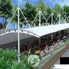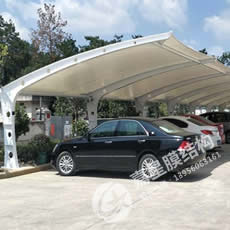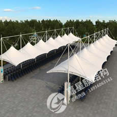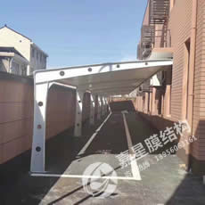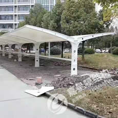 六安膜結構車棚工程位于安徽省六安市,建筑面積430平方,合同工期15天。考慮到造型和實際功能需求,我司將本工程設計成凸弧梁單挑車棚,檐口高度2.7米,工程完工后,客戶非常滿意。